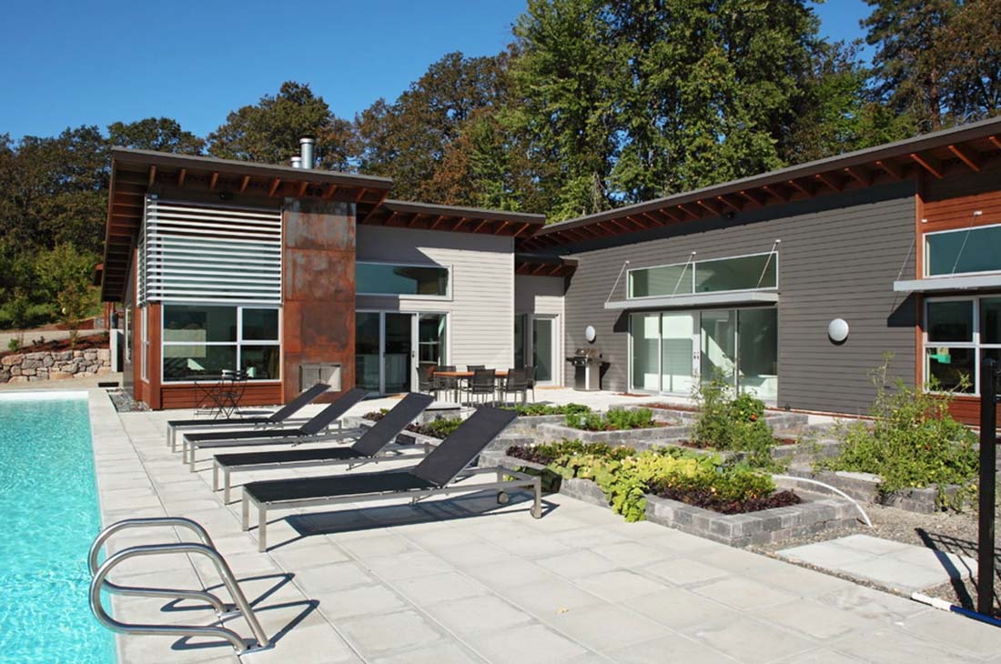 2. Minimalist Metal Home with Pool