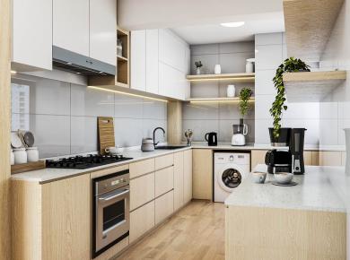 Opt for a minimalist color palette and choose natural materials for countertops and backsplashes.